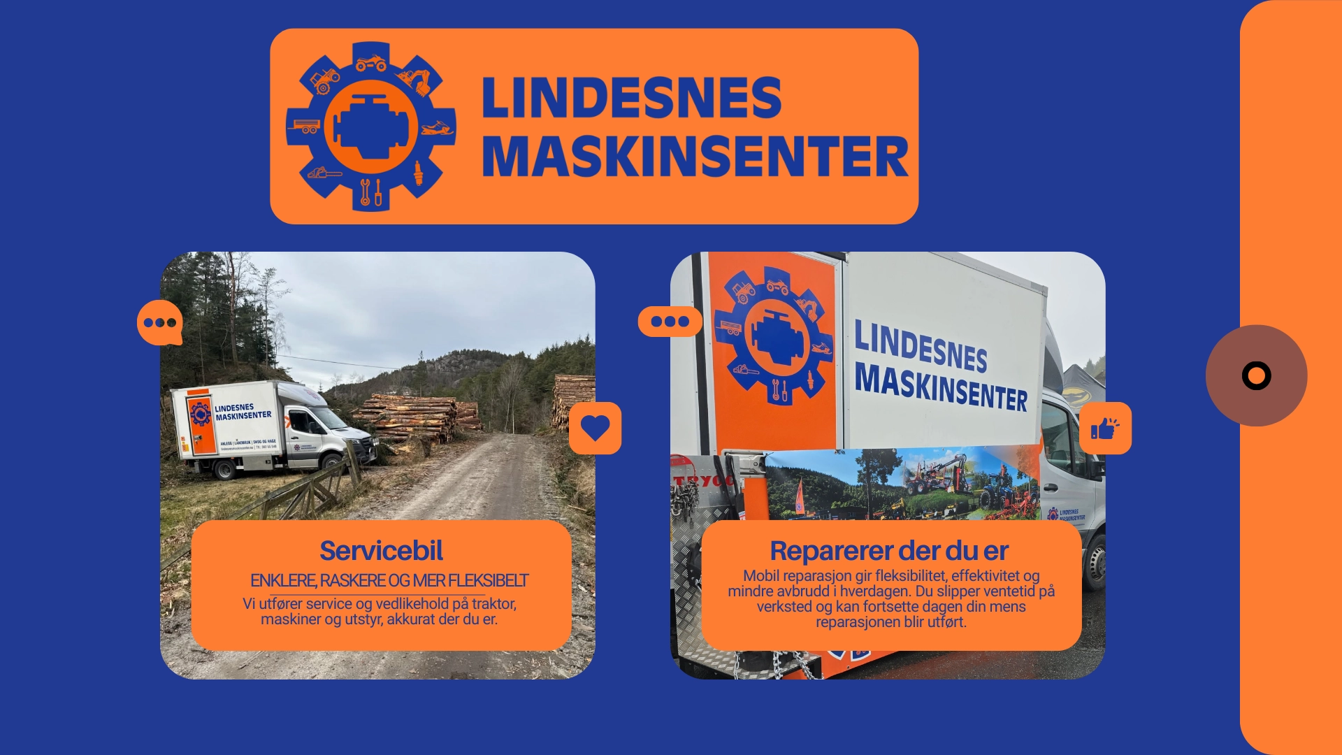 Vårt verksted er utstyrt for reparasjoner av landbruksutstyr, tilhengere, traktorer og andre småmaskiner. Vi har avansert feilsøkingsutstyr som støtter de fleste merker.