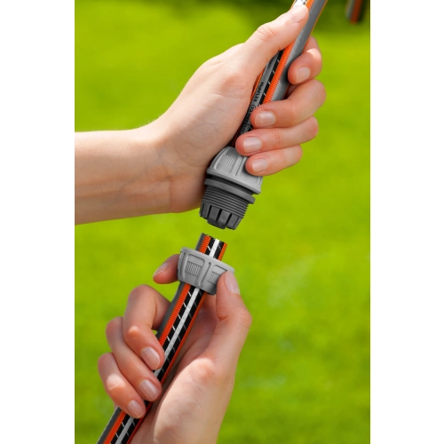 Dersom vannslangen din har fått en lite hull eller lekker, trenger du ikke bytte den ut. Med GARDENA reparasjonsdel til slange 19 mm (3/4") kan du raskt og enkelt reparere slangen. Klipp vekk den skadde delen av slangen, og bruk deretter reparasjonsdelen til å koble de to delene sammen igjen. De spesialformede låsemutterne med Power Grip gjør det enkelt å stramme til, og gir ekstra god holdekraft, slik at du får en trygg og vanntett kobling. GARDENA reparasjonsdel til slange passer til slanger med diameter på 19 mm (3/4"), er fremstilt i materialer av høy kvalitet og er frostsikker. Produktet leveres med 5 års garanti, og er en del av det originale GARDENA systemet.