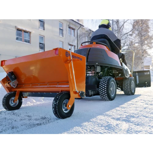 En robust, spreder for ulike oppgaver. En elektrisk drevet spredevalse, med lett justerbar flyt - sikrer jevn og pålitelig spredning. Det toppplasserte beskyttelsesgitteret fungerer også som en sil ved fylling med veisalt, sand, grus og gjødsel med en partikkelstørrelse på opptil 30 mm.Mulig å legge til valgfritt koblingssett for å passe til 50 mm tilhengerfeste. Krever at frontklipperen er utstyrt med 'Strømuttakssett, bak'.