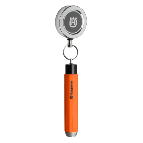 Holder med returfjær for 12mm merkekritt. Robust design i metall som enklelt kan festes i belte eller selen.