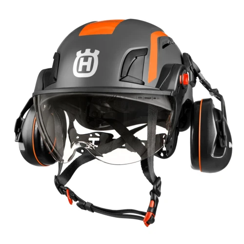 Husqvarna Spire Vent-hjelmen for arborister er designet for den profesjonelle arboristen som krever bekvemmelighet og stil under arbeidet uten at det går på bekostning av sikkerhet og beskyttelse. Spire Vent-hjelmen er lett og godt ventilert for maksimal komfort. Den har en universaltilpasning og en hjulskralle for enkel justering av størrelse. Den er også utstyrt med fester for montering av hodelykt, øreklokker og visir. Kompatibel med Husqvarnas passive øreklokker eller X-COM R med Bluetooth samt tre Husqvarna-visirstiler, inkludert klart visir, speilvisir og sotet visir (alle selges separat). Oppfyller den europeiske standarden EN 12492 for arbeid i høyder.